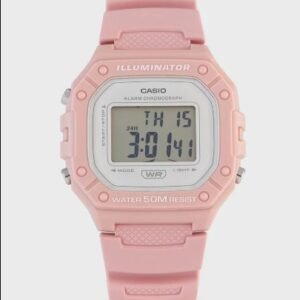 Pink Pink Womens case with CASIO Women’s Digital Pink Dial Watch – W-218HC-4AVDF display, Get the iconic square face paired with resin band. This sporty design features a colorful pop to take you seamlessly from dressy to casual, whatever is on your calendar. Not just versatile, but practical, as well. With the functionality that digital delivers — LED light for easy reading in the dark, 1/100-second stopwatch, alarm, and calendar — all protected by 50-meter water resistance. dial Pink mm case diameter, Square movement, 43.2 water resistant Sports Digital bracelet with Resin Band