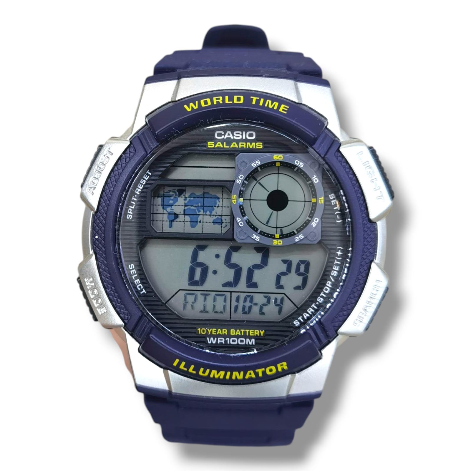 Digital 10-Year Battery, World Map, World Time 48 Cities,