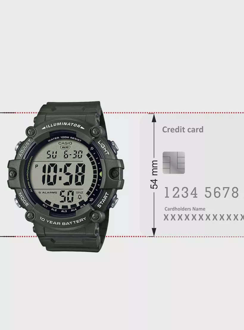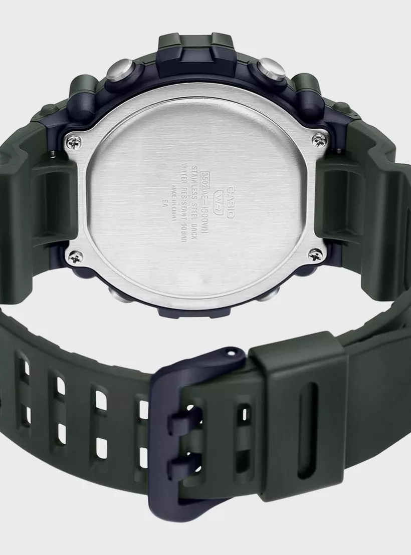 The Casio AE-1500WH-1AVDF is built for durability, readability and convenience. Its oversized LCD display ensures crystal-clear time visibility, while the rugged resin case keeps the watch lightweight and comfortable on the wrist. With 100M water resistance, it’s ready for swimming, outdoor activities and daily wear.