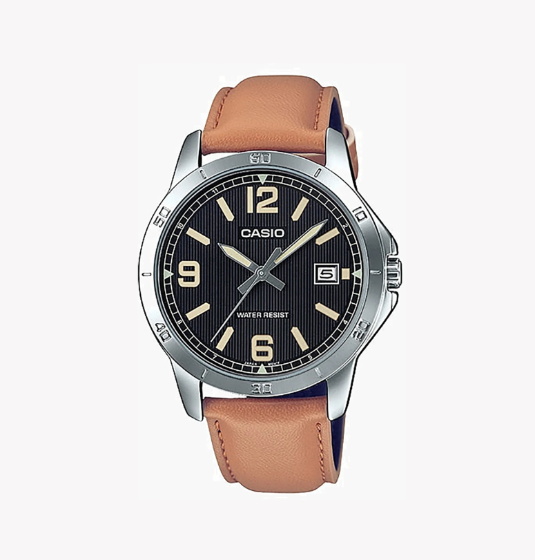 Classic and stylish, the Casio MTP-V004L-1B2UDF features a sleek analog display, stainless steel case, date window, and a comfortable genuine leather strap — perfect for everyday and formal wear.
